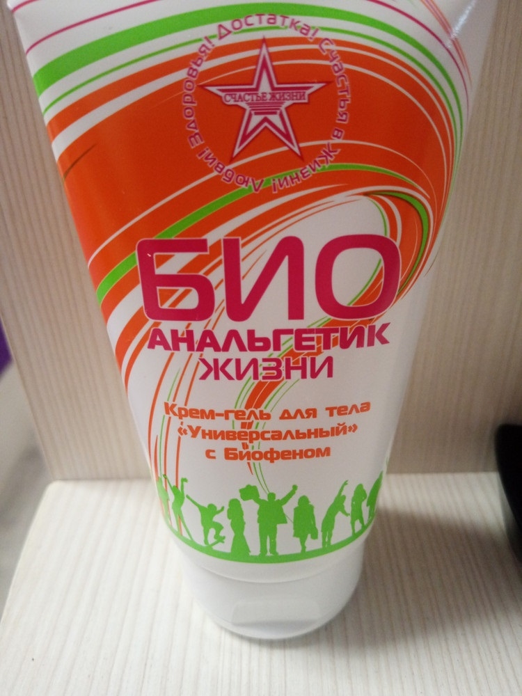 bigblackcatДостоинства:Незаменимая вещь в аптечке Недостатки:Запах камфоры Лето для меня период ушибов, падений, "сбора" углов, укусов насекомых, солнечных ожогов и уставших ног. Много лет назад я открыла для универсальный крем-гель для тела Счастье жизни "Био Анальгетик Жизни " с биофеном. Это продукт корпорации "Счастье жизни", которая занимается БАДами, и я как то не очень доверяла рекламируемым продуктам, но пара баночек надолго осели в моей аптечке и один из них Биоанальгетик. Этот крем гель реально помогает от всех заявленных проблем в его аннотации: Так же на фото можно увидеть что масса тубы 125 мл, состав, производителя и сроки годности. Для меня это палочка выручалочка от синяков, ушибов, солнечных ожоговом отёкших ног. Так же на фото можно увидеть что масса тубы 125 мл, состав, производителя и сроки годности. Для меня это палочка выручалочка от синяков, ушибов, солнечных ожоговом отёкших ног. Если вдруг где увидите - советую приобрести его в свою аптечку! Подробнее на Отзовик: http://otzovik.com/review_3517519.html