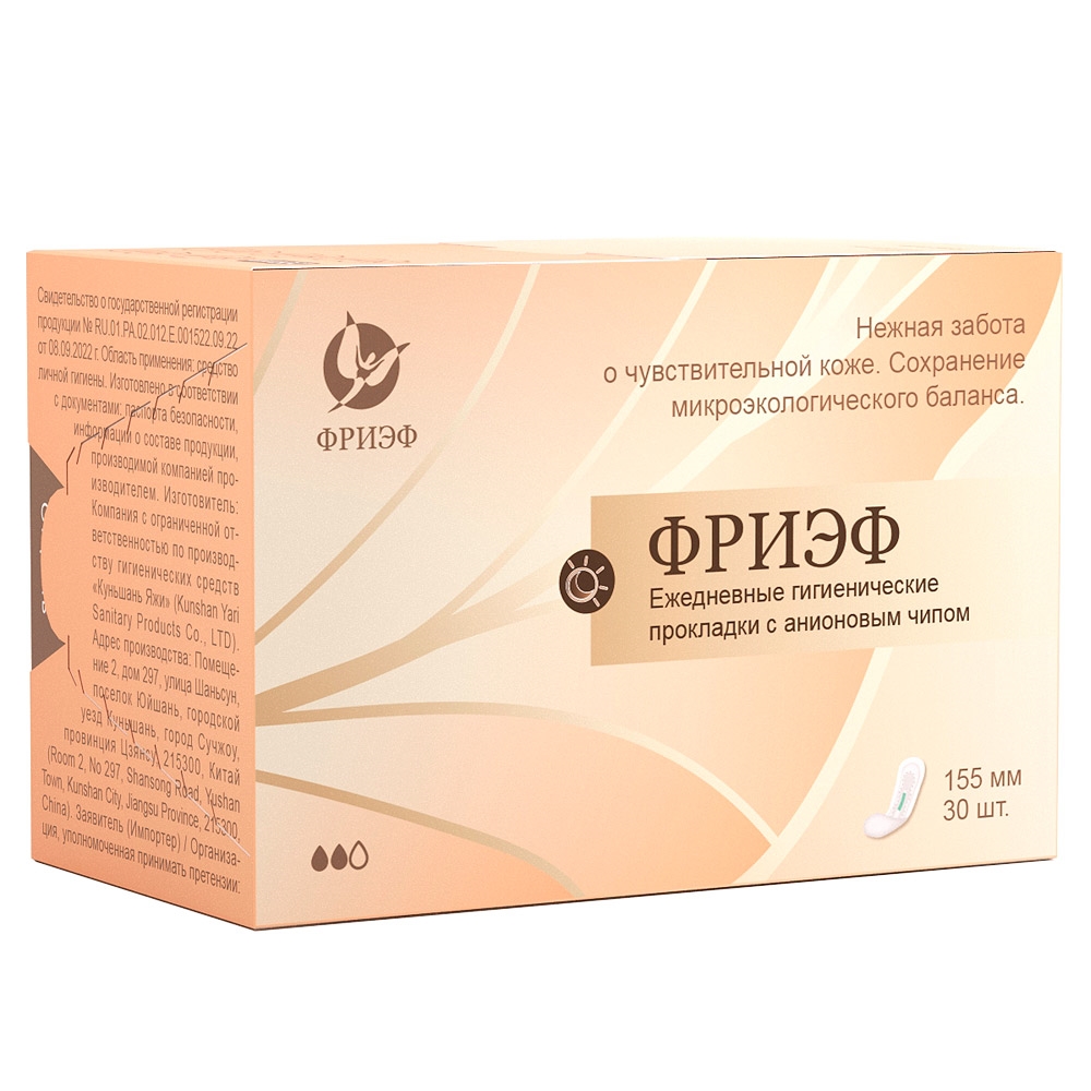 Ежедневные гигиенические прокладки с анионовым чипом. "Фриэф", 155 мм, 30 шт